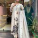 Classy Swirls – Fancy Straight line 3pcs kurti set – Peach