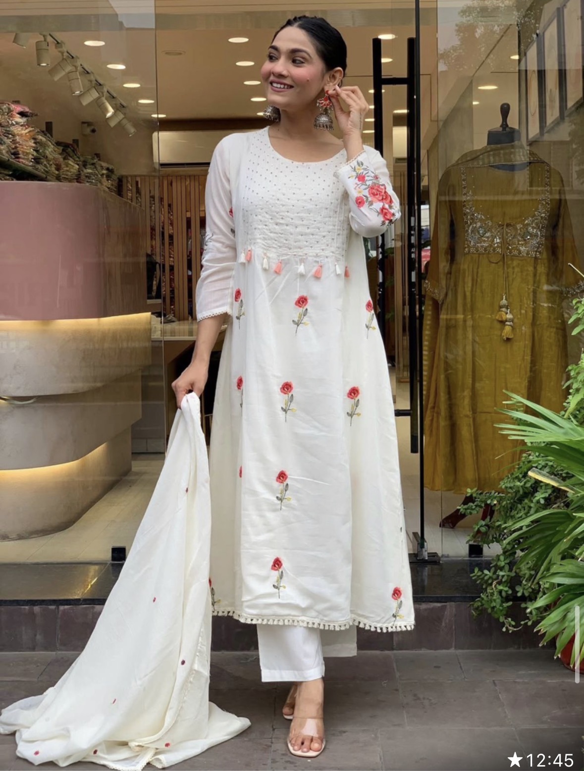 Florets – Floral handwork 3pcs Kurti set – White