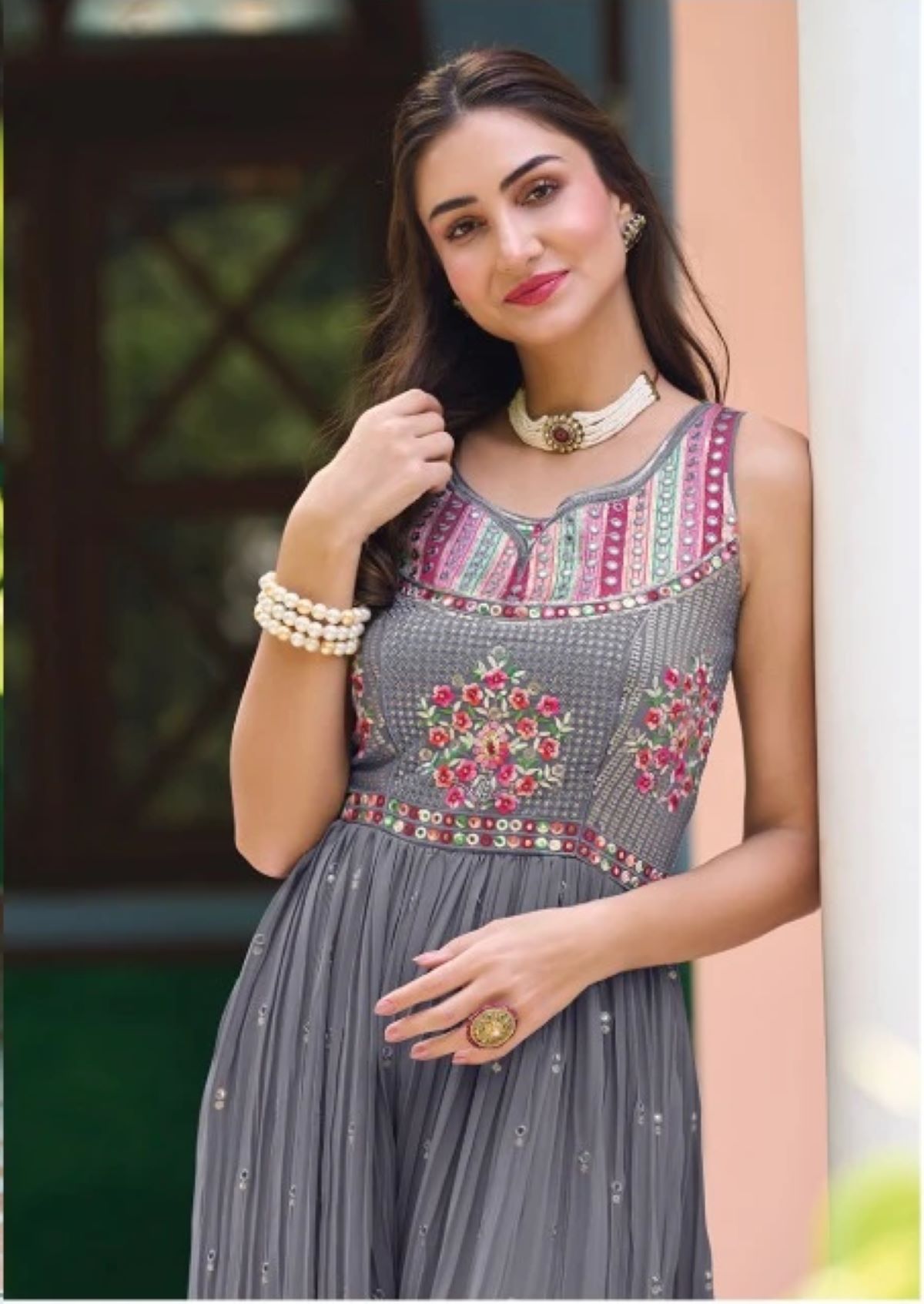• Heavy embroidery work on front & back.