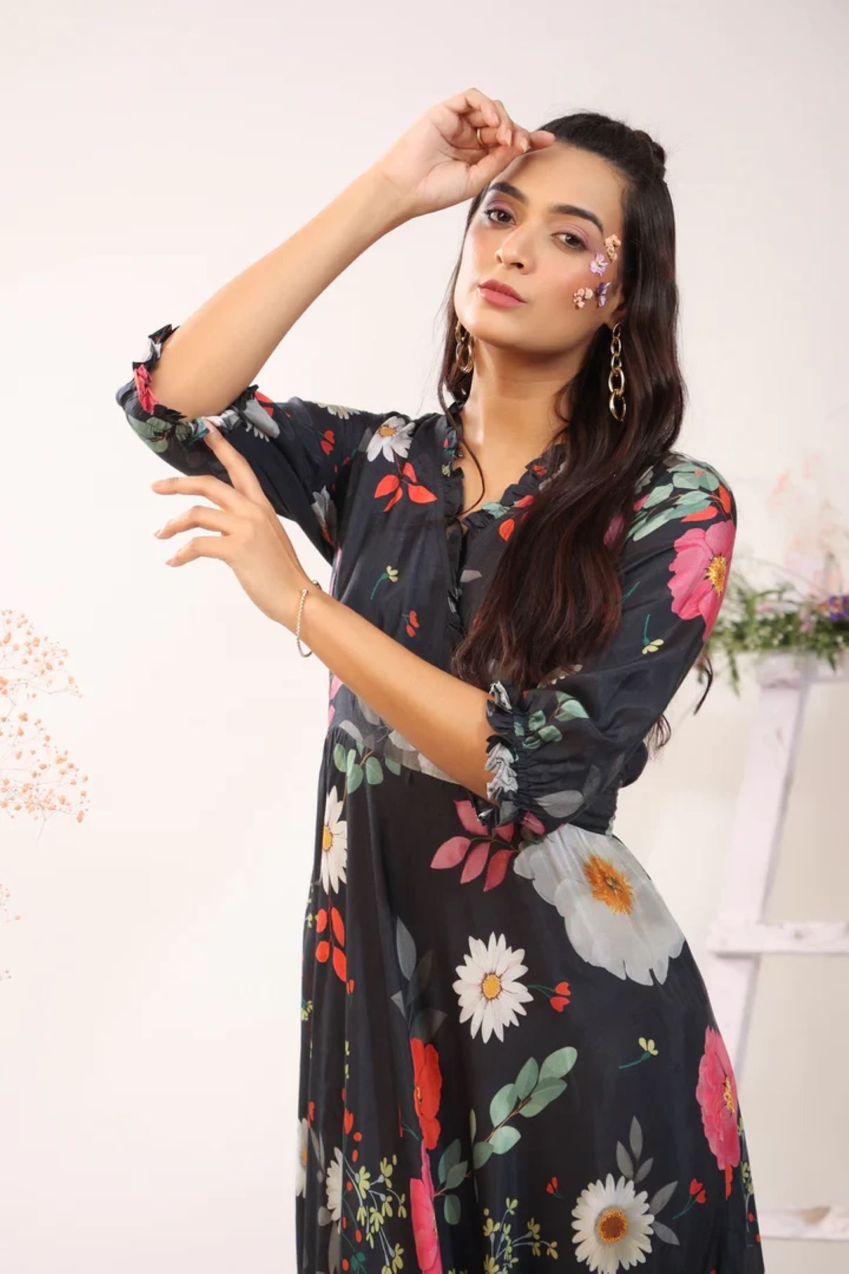 Neck: V – neck, Sleeves – Balloon Sleeves