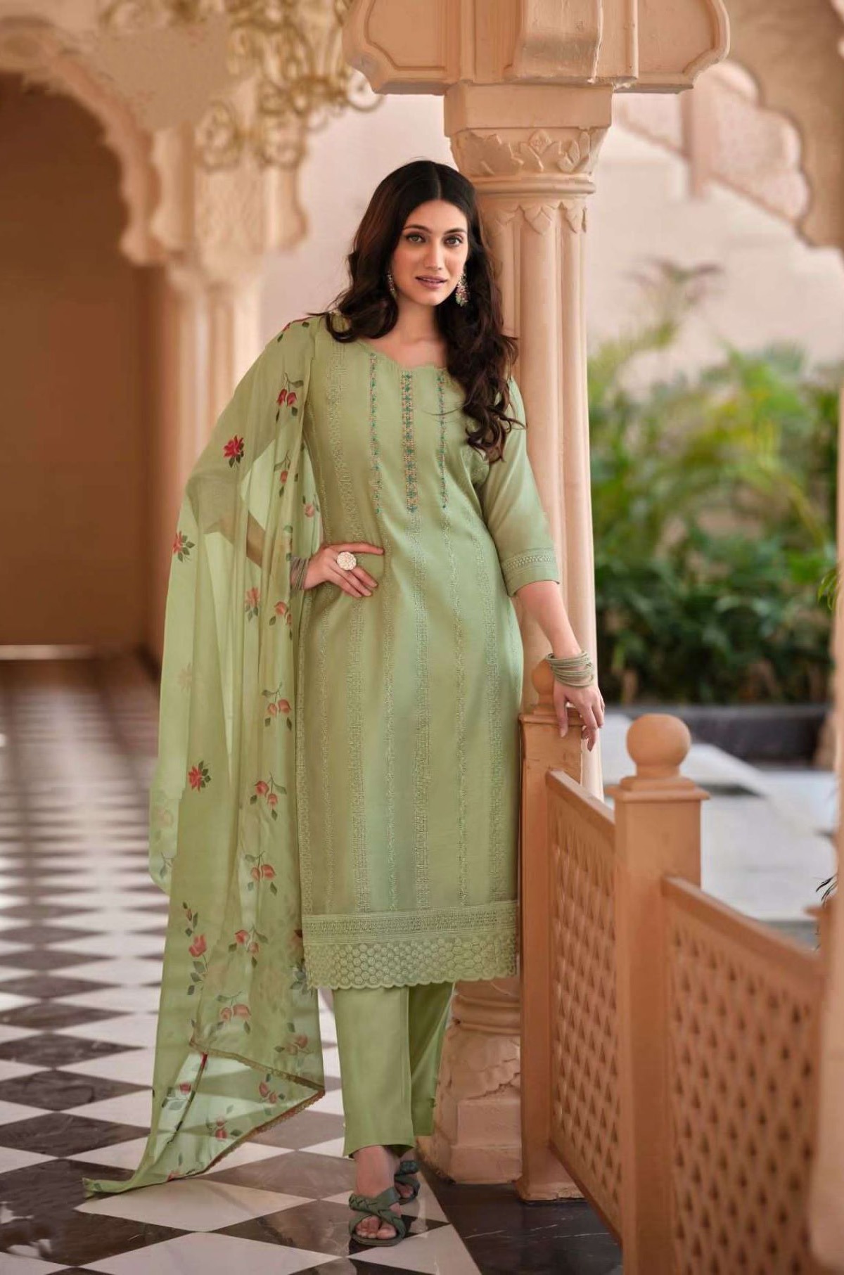 - Top fabric-Schiffli Work And Handwork On Chanderi Silk With Inner,Bottom-Pure Viscouse