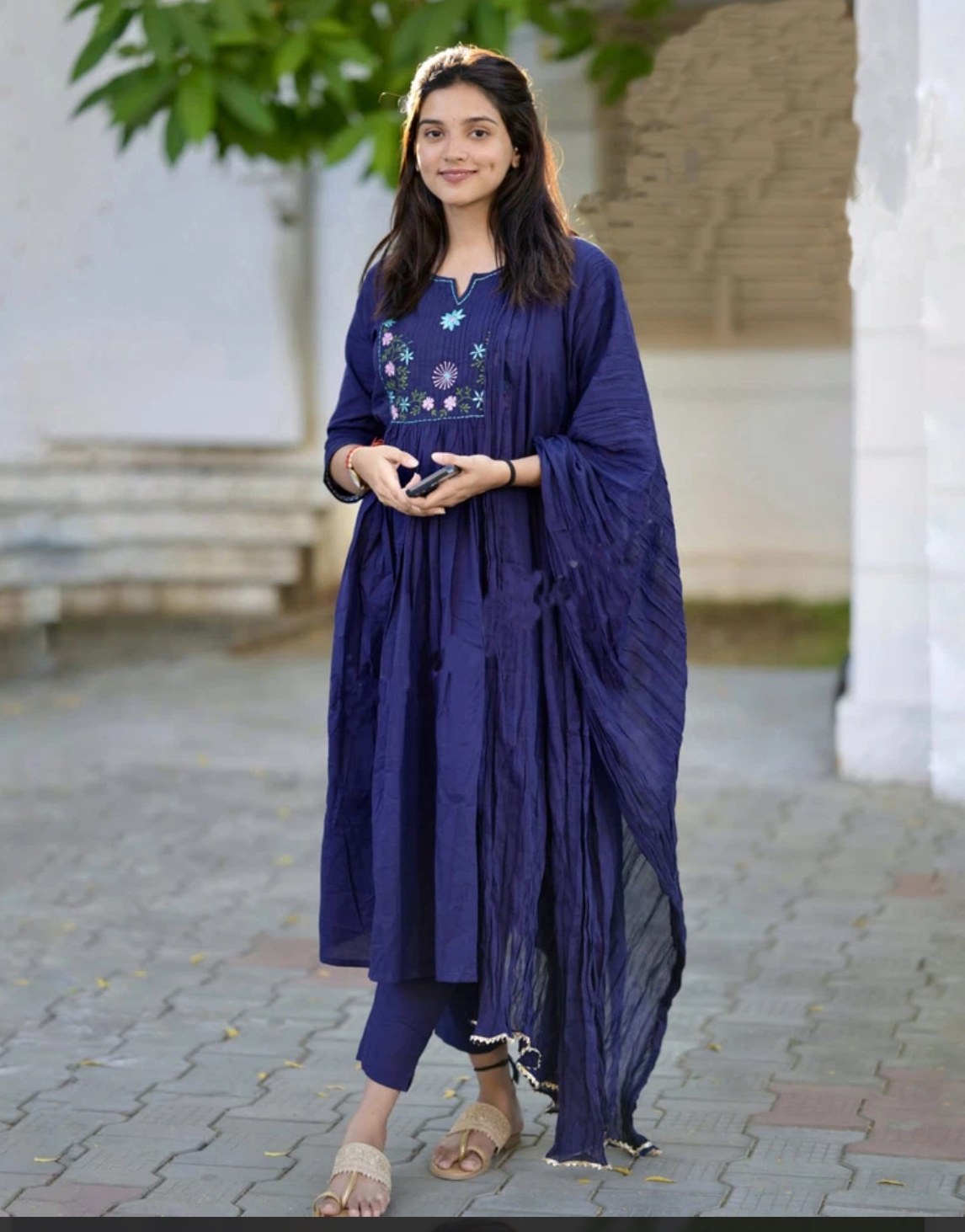 Florets – Floral handwork 3pcs Kurti set – Soft lavender