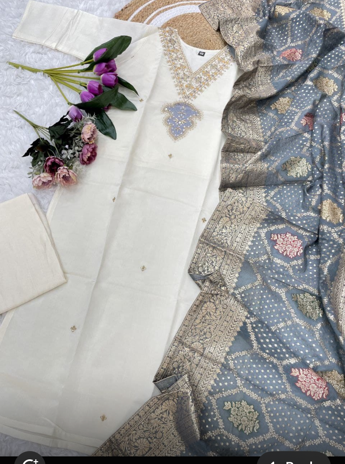 Classy Swirls – Fancy Straight line 3pcs kurti set – Grey