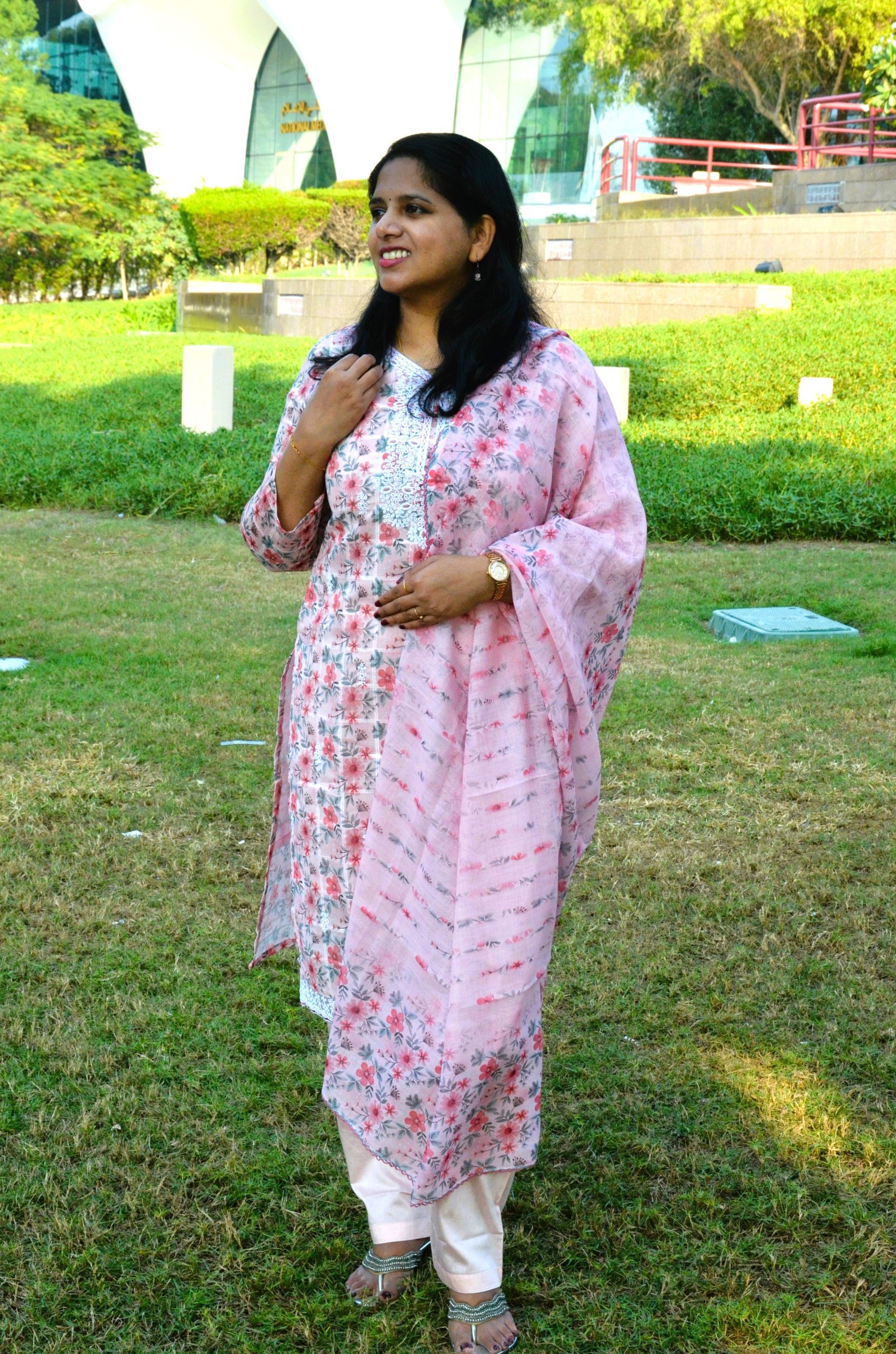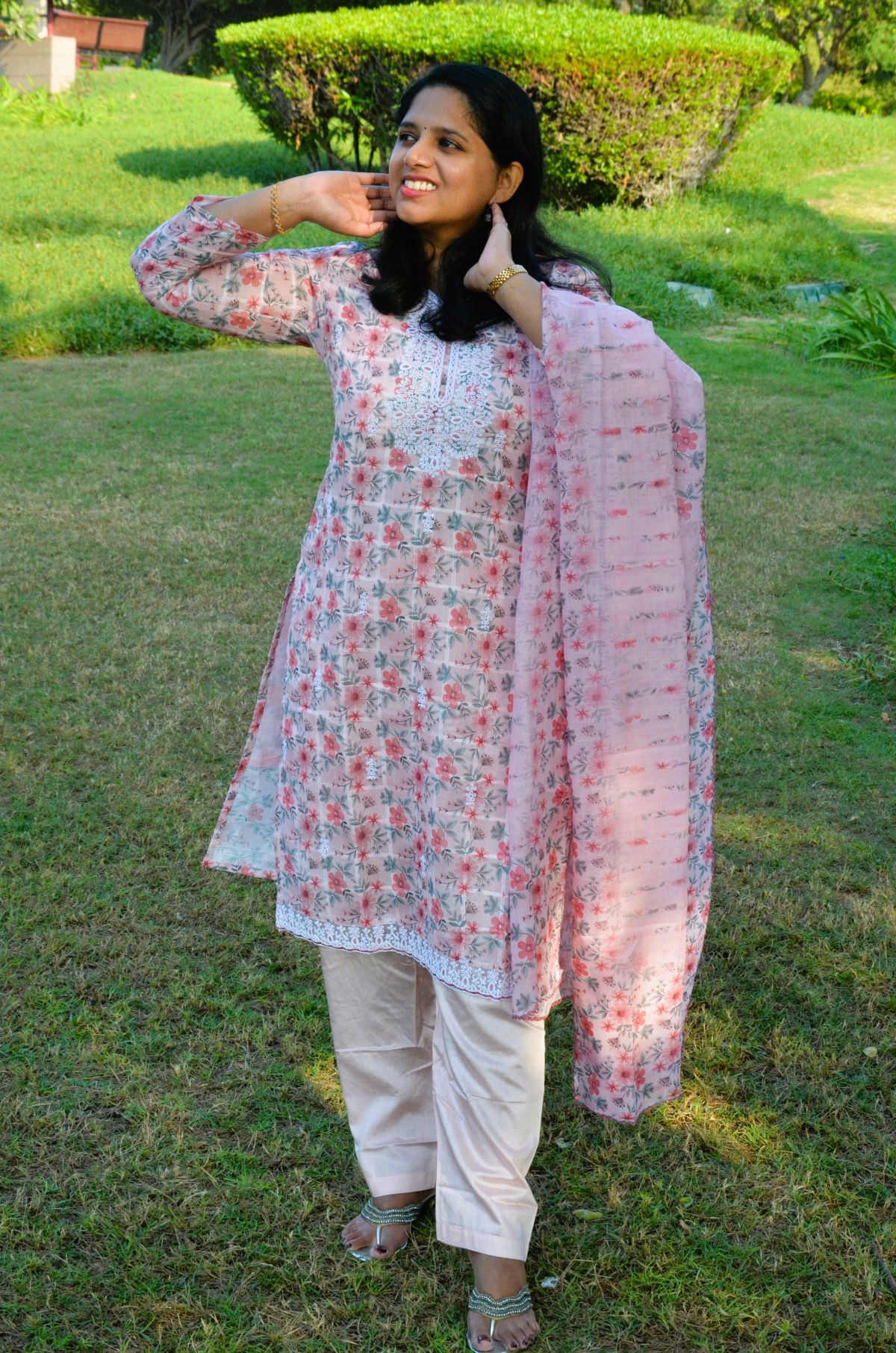 • Fabric description: Top: Heavy linen with embroidery work, Dupatta: Heavy linen, Inner: Mal cotton, Bottom: Chanderi cotton